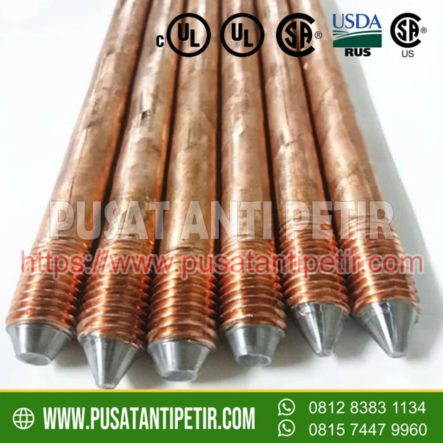 - Pelapisan tembaga minimum 10 mil pada batang yang terdaftar pada UL® 467