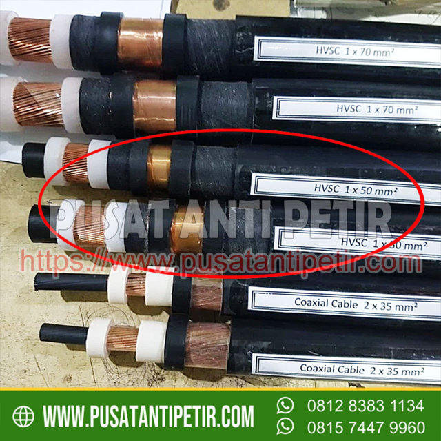 Kabel Coaxial 1x50mm dikhususkan pada aplikasi tegangan tinggi ( high voltage shielded cable ) seperti kekuatan arus sambaran petir dengan impedansi rendah agar dapat meminimalisir side flashing.